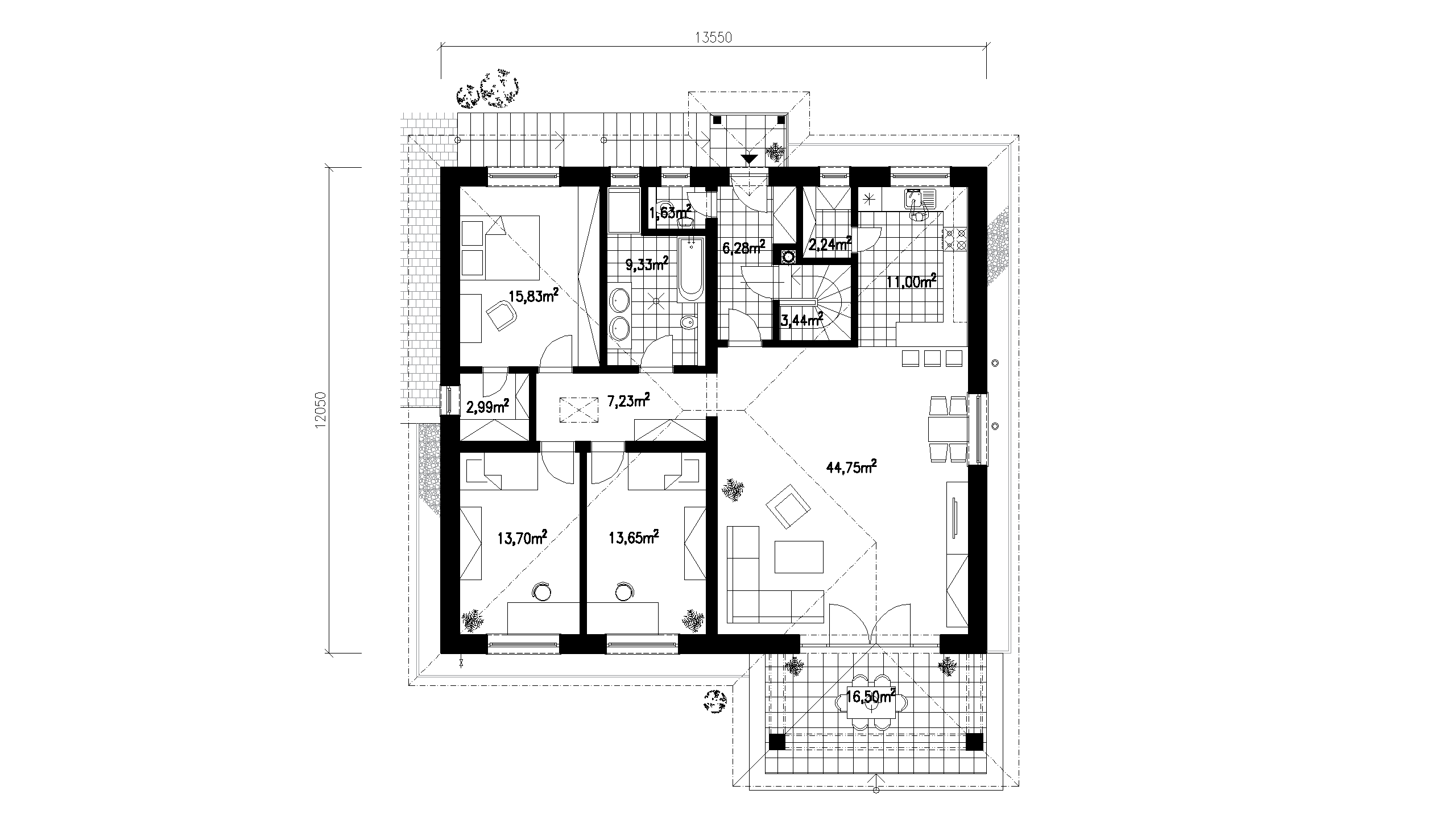 TENTO PROJEKT JE VÝSLEDKOM OSOBITNÉHO PRÍSTUPU K NÁVRHU, S DÔRAZOM NA DETAILY, A REŠPEKTOVANIE PREDSTÁV KLIENTA. NOVOSTAVBA KOPÍRUJE SVAHOVITÝ TERÉN A TAK DOKONALE ZAPADÁ DO OKOLITÉHO PROSTREDIA. DISPOZIČNÉ RIEŠENIE S OHĽADOM NA SVETOVÉ STRANY, VYTVORILO KOMFORT PRE RODINNÉ A MODERNÉ BÝVANIE