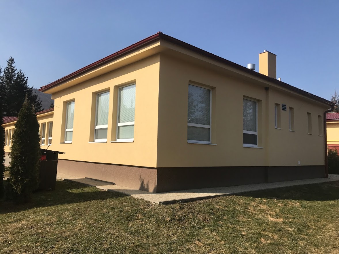 SÚČASŤOU PROJEKTU BOLA VÝMENA OKENNÝCH KONŠTRUKCII, ZATEPLENIE OBJEKTU, NÁVRH ŠIKMEJ STRECHY NAD HOSPODÁRSKOU BUDOVOU A ZATEPLENIE PLOCHÝCH STRIECH. PROJEKT BOL NAVRHNUTÝ DO ENERGETICKEJ TRIEDY PRIMÁRNEJ ENERGIE A1. NÁROČNÉ NORMOVÉ POŽIADAVKY NA ENERGETICKÚ EFEKTÍVNOSŤ BOLI SPLNENÉ AJ VĎAKA REKONŠTRUKCII VYKUROVANIA, NÁVRHU REKUPERÁCIE A VÝMENY OSVETLENIA.