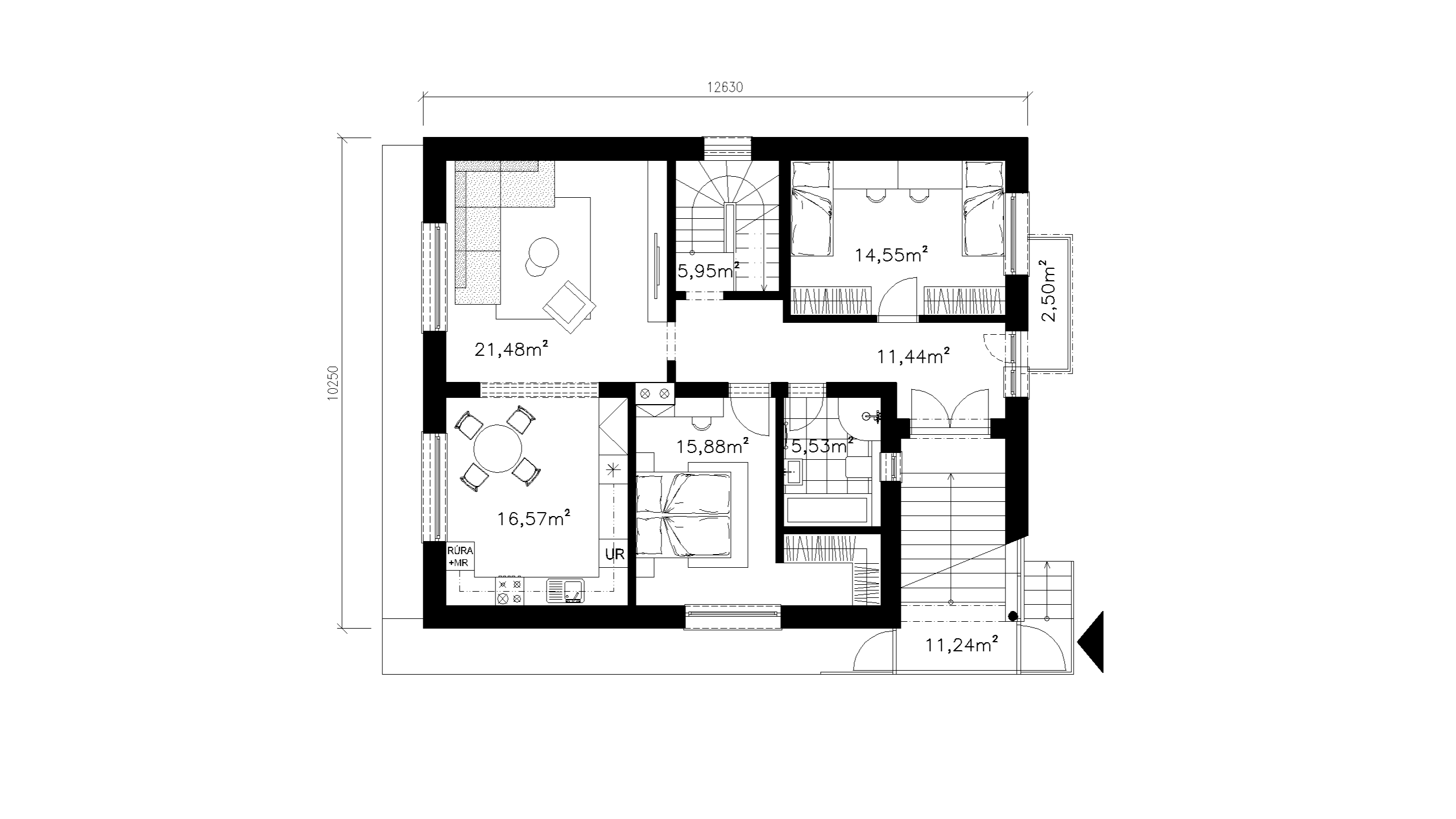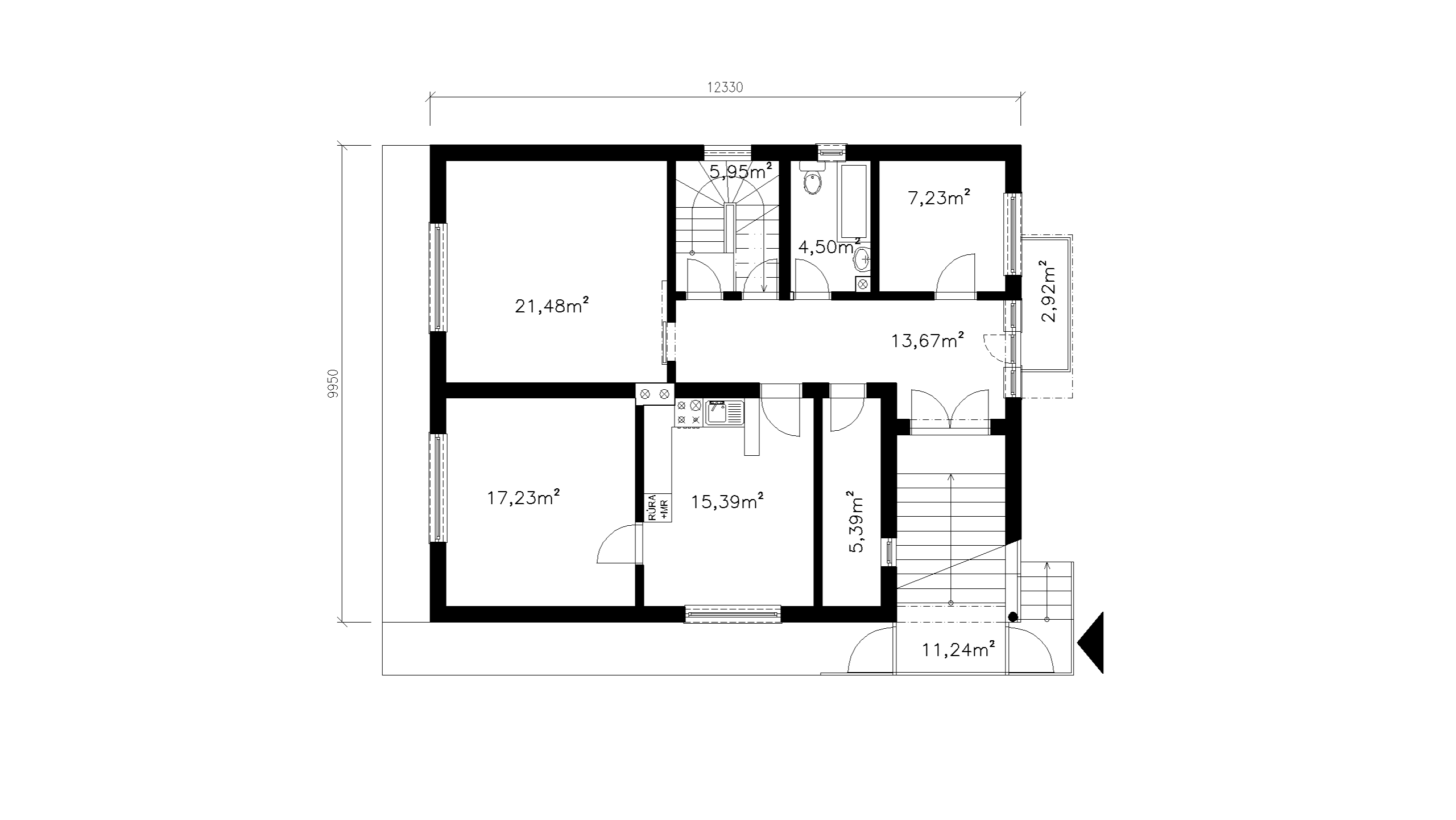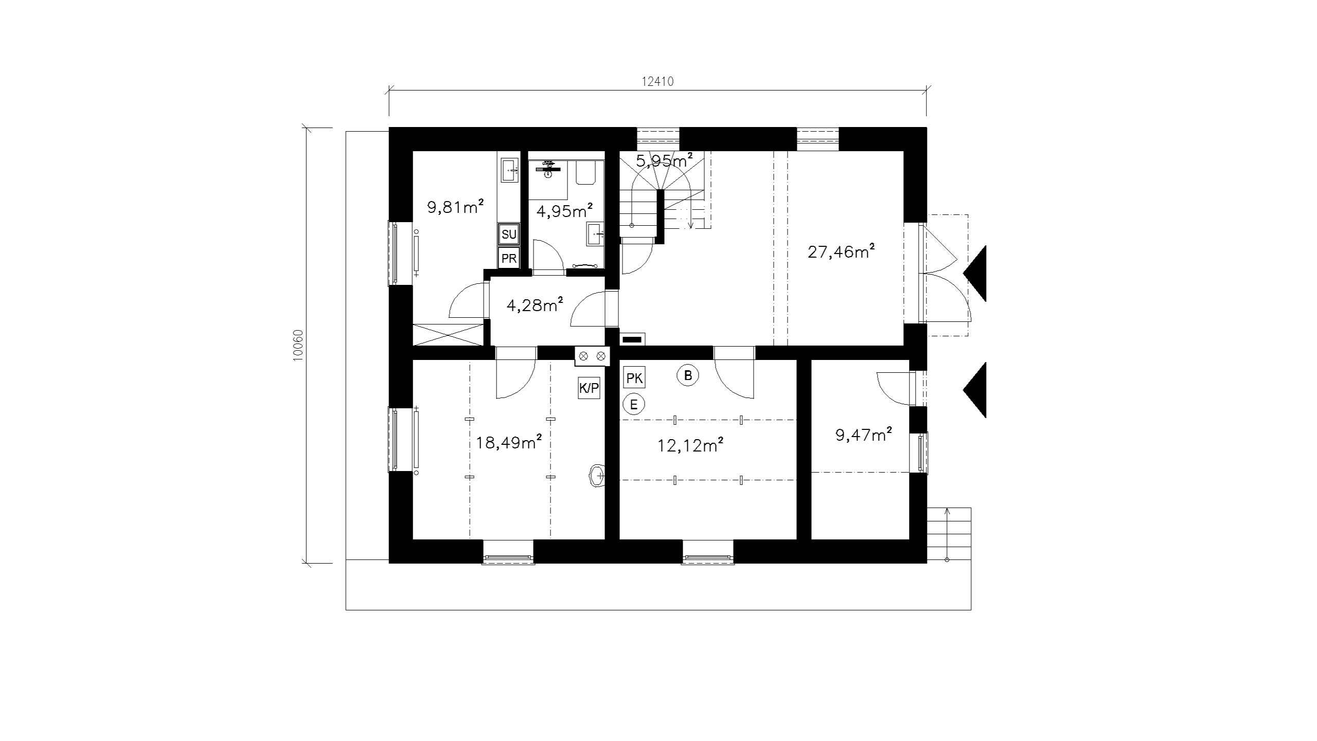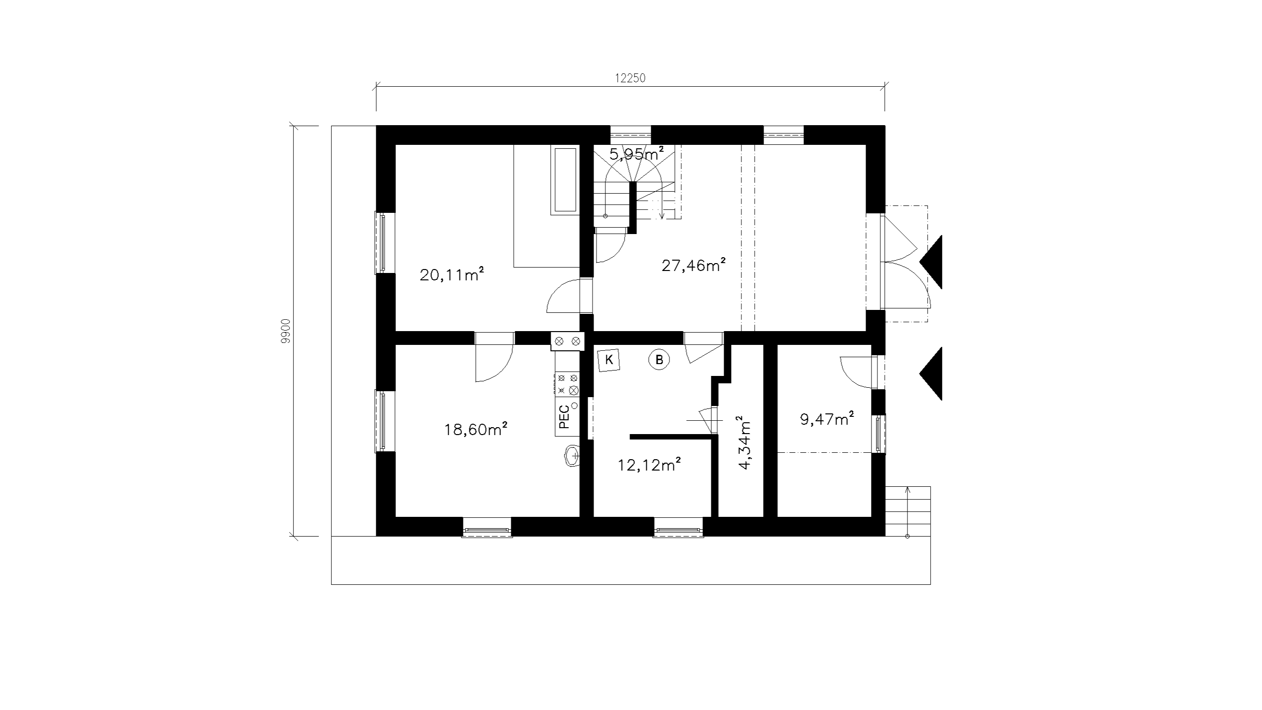 DISPOZÍCIA 1. NADZEMNÉHO PODLAŽIA JE RIEŠENÁ AKO HLAVNÁ OBYTNÁ ÚROVEŇ DOMU, KTORÁ POZOSTÁVA Z OBÝVACEJ IZBY, KUCHYNE S JEDÁLŇOU A DVOCH SAMOSTATNÝCH OBYTNÝCH IZIEB. DISPOZÍCIA JE DOPLNENÁ O HYGIENICKÉ ZÁZEMIE TVORENÉ KÚPEĽŇOU S TOALETOU A KOMUNIKAČNÝ PRIESTOR. POD TOUTO ÚROVŇOU SA NACHÁDZA SUTERÉNNE PODLAŽIE, KTORÉ JE VYUŽÍVANÉ NAJMÄ NA TECHNICKÉ A DOPLNKOVÉ FUNKCIE DOMU A ZABEZPEČUJE PREVÁDZKOVÉ ZÁZEMIE OBJEKTU. VERTIKÁLNE PREPOJENIE JEDNOTLIVÝCH PODLAŽÍ JE ZABEZPEČENÉ VNÚTORNÝM SCHODISKOM SITUOVANÝM V CENTRÁLNEJ ČASTI DISPOZÍCIE. OBJEKT JE ZASTREŠENÝ PÔVODNOU SEDLOVOU STRECHOU S PLECHOVOU KRYTINOU.