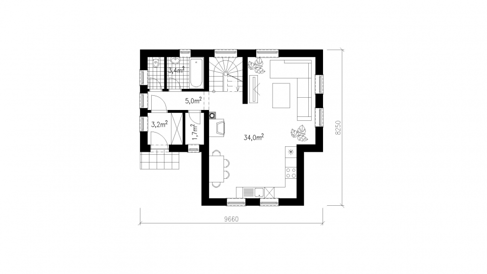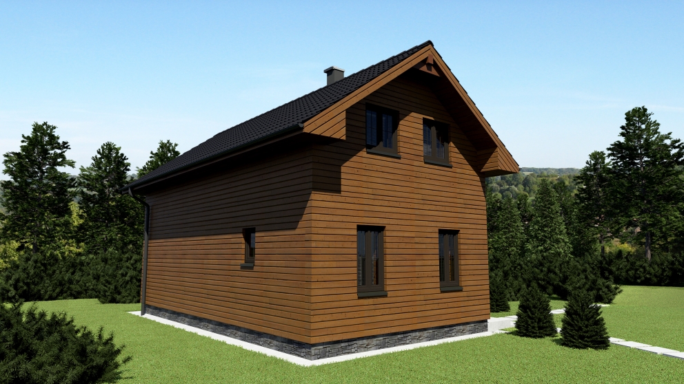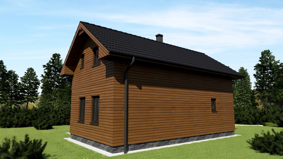 LIMITNÁ PÔDORYSNÁ PLOCHA 60 M2 A VÝŠKA 5 M UMOŽNILI NAVRHNÚŤ HORSKÚ CHATU SO ŠTYRMI OBYTNÝMI MIESTNOSŤAMI. NA PRÍZEMÍ JE OKREM TECHNIKCKÉHO A HYGIENICKÉHO ZÁZEMIA SITUOVANÁ OBÝVACIA IZBA SPOJENÁ S KUCHYŇU. OBYTNÉ PODKROVIE JE PRÍSTUPNÉ CEZ DREVENÉ SCHODISKO. V PODKROVÍ SA NACHÁDZAJÚ TRI OBYTNÉ MIESTNOSTI A KÚPELŇA. POUŽITÉ MATERIÁLY A ARCHITEKTONICKÉ RIEŠENIE UMOCŇUJÚ ČARO PROSTREDIA, V KTOROM JE CHATA NAVRHNUTÁ.