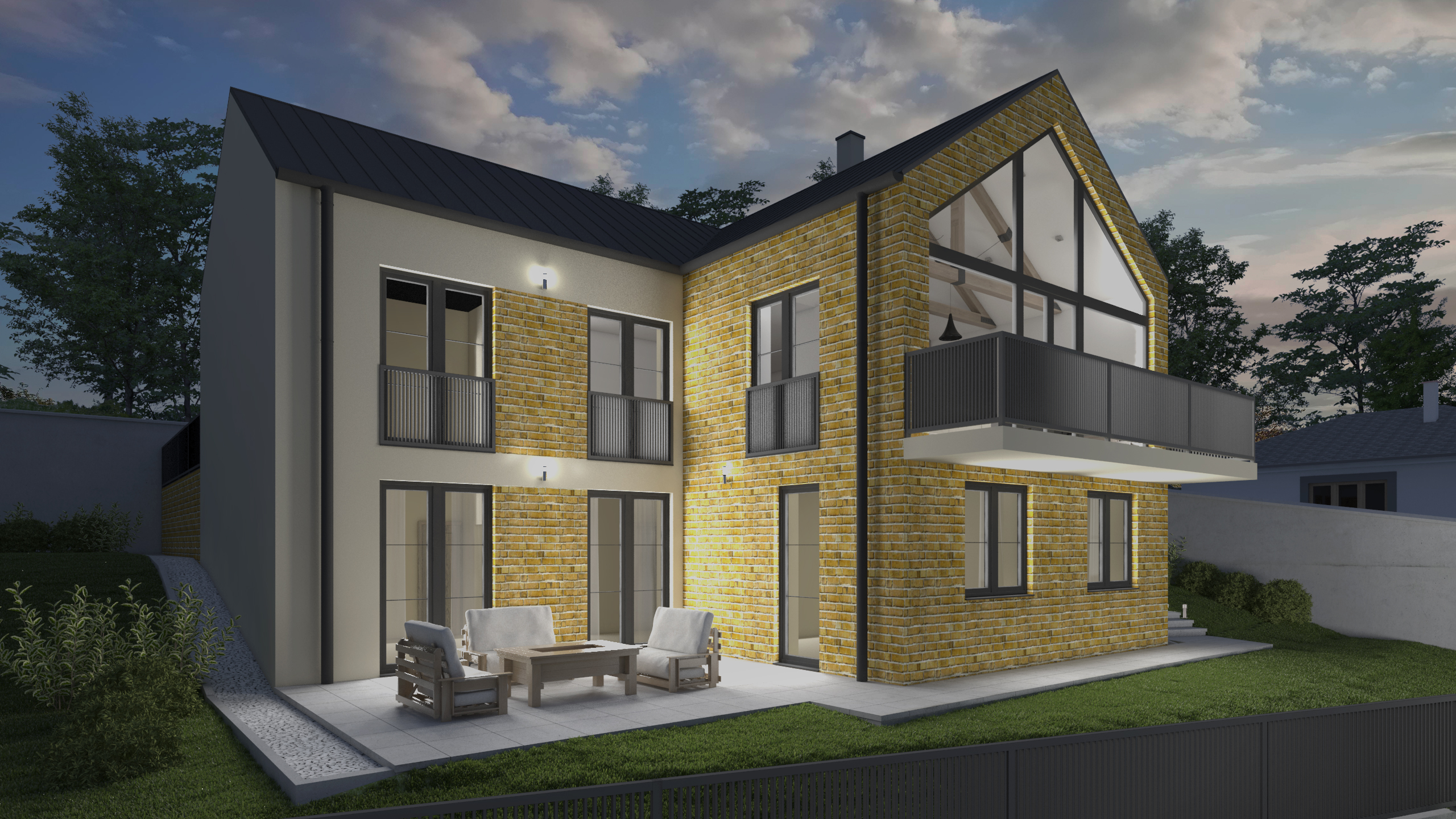 V TOMTO PRÍPADE SME NAVRHLI MODERNÝ RODINNÝ DOM OSADENÝ DO KOMPLIKOVANÉHO TERÉNU S VYUŽITÍM NÁDHERNÝCH VÝHĽADOV NA HRAD DEVÍN A HAINBURG. POMERNE MALÁ PARCELA SPOLU S MIESTNYMI REGULATÍVAMI ÚZEMNÉHO PLÁNU ZNAČNE FORMOVALI VEĽKOSŤ DOMU.